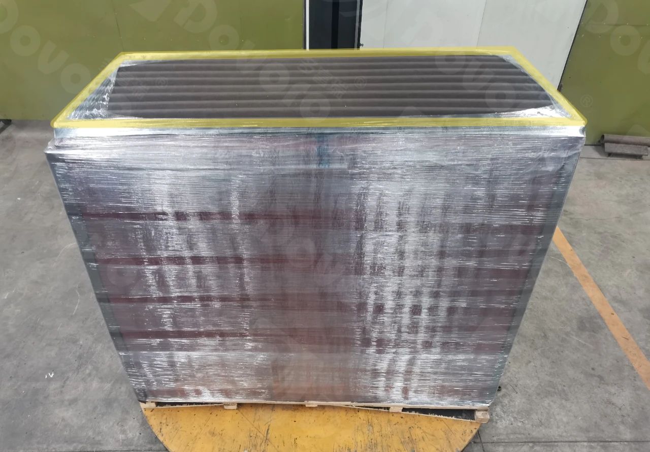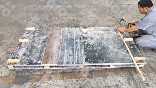 在木板的两侧,使用等同波高,等同波距的木肋条进行产品固定,使得产品在运输中更加稳定,不会因为货车的加减速而造成整体位移,同时保证货物的尺寸不会变化。