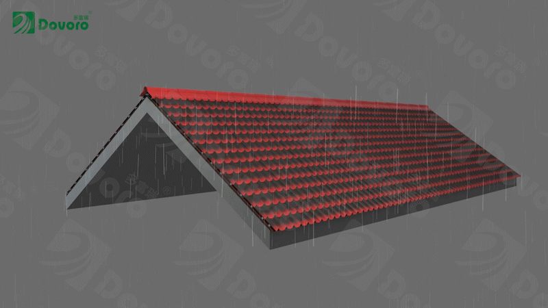 即使遇到连续的阴雨天气,瓦材中的水分来不及蒸发,轻质坡屋面系统的波形沥青瓦下方,仍有200cm³的空间,可以经过通风带走屋面系统中的潮气。