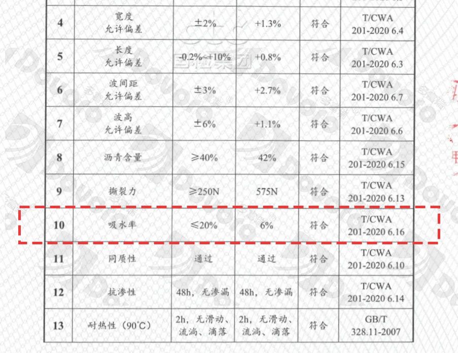 按照T/CWA201-2020《波形沥青瓦》的标准,波形沥青瓦的吸水率需要≤20%。以“幻影瓦”为例,吸水率仅为6%,远低于要求标准。同时在25次循环冻融测试后,性能依旧稳定。