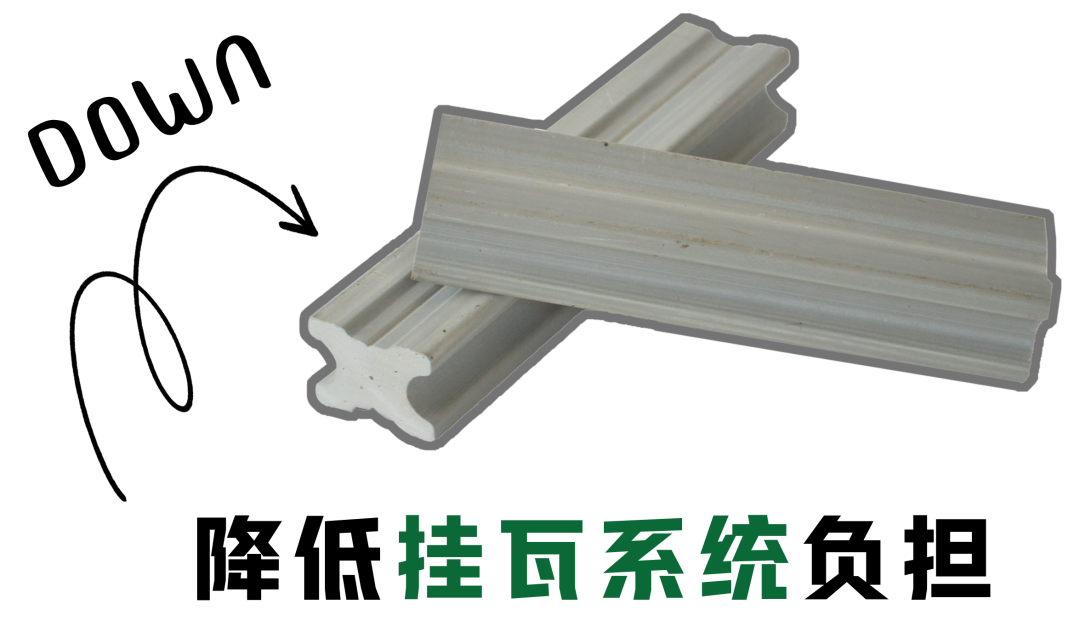 挂瓦条及瓦钉随着时间推移,材料强度降低。轻质的材料可降低挂瓦系统的负担,不会因瓦材过重,导致瓦钉或瓦材脱落。