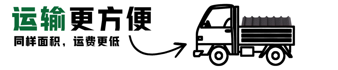 轻质的材料对运输有十分重要的影响。更轻的重量,就意味着同样面积的瓦材,波形沥青瓦的运费更低,运输更方便。